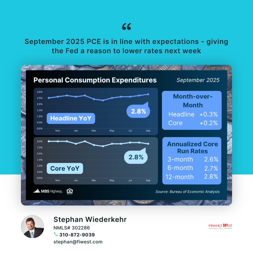 Dec 5, 2025. Today’s release of Core PCE, the Fed’s preferred inflation gauge, rose 0.2% in September, while the annual rate eased from 2.9% to 2.8%, slightly better than expected.