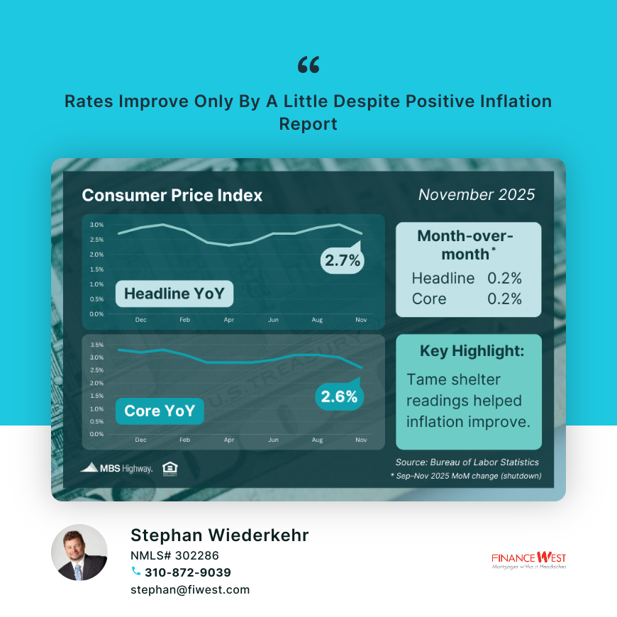 Dec 19, 2025: The delayed November inflation data was better than expected: the Consumer Price Index (CPI) eased to 2.7% year-over-year, while Core CPI cooled to 2.6%. Unfortunately, the bond market’s reaction was mute. Rates have not yet fallen as much as one would have expected.