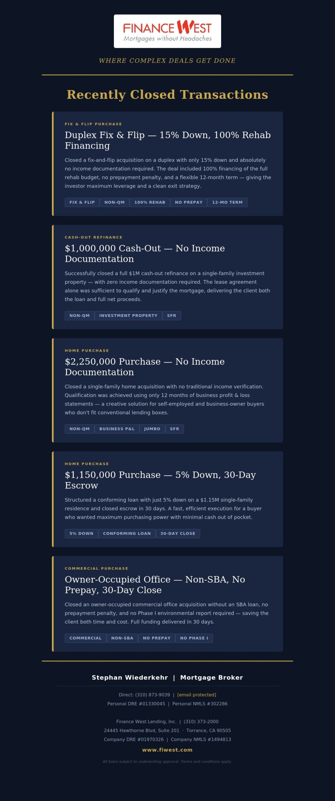 Here is a snapshot of some mortgages we recently closed that gives a decent overview of the variety of loan types available to you