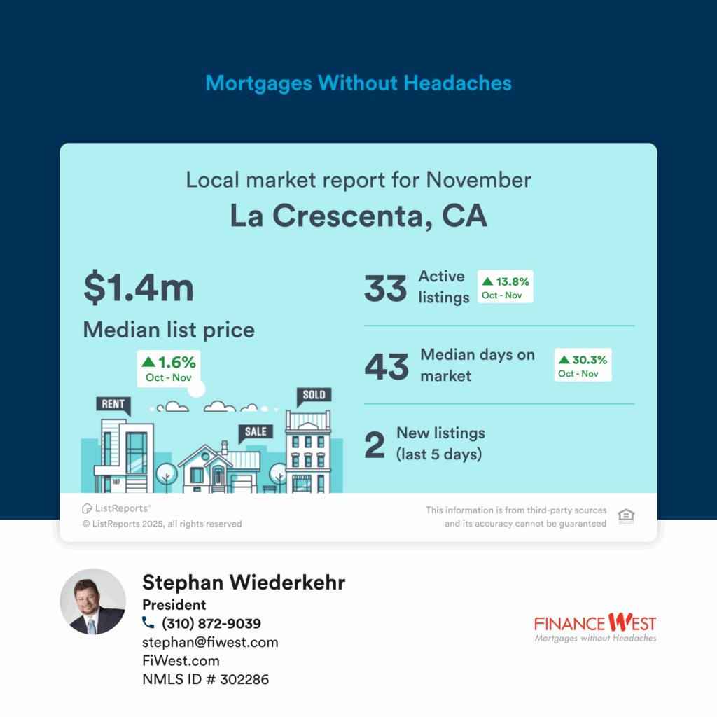 Housing Market Snapshot November 2025 for La Crescenta, CA